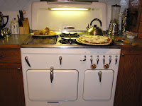 DING! Okay pork chops need to come out of the oven and pizza needs to go in. Ah yes! The perils of having a Chambers Stove. The one Rachel Ray has. The oven isn't even the size of my microwave, but DAMN!!! Can this thing COOK! (And so can I!)